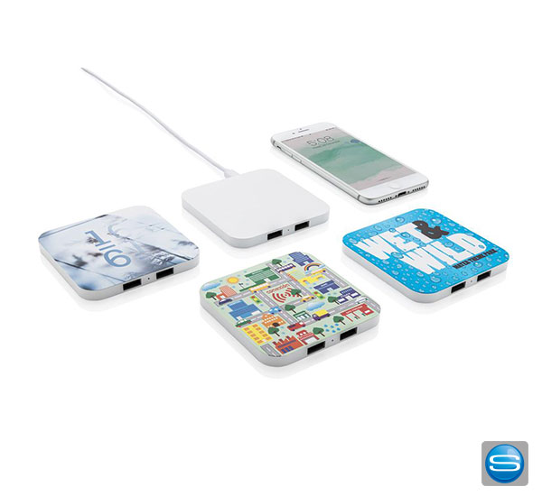 Wireless Charger 10W mit USB Ports als Werbemittel mit Logo bedruckt