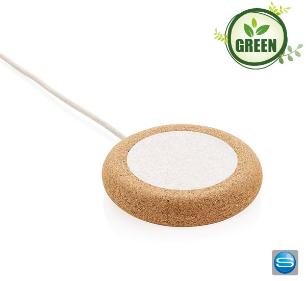 Wireless Charger aus Kork und Weizen mit Ihrem Logo