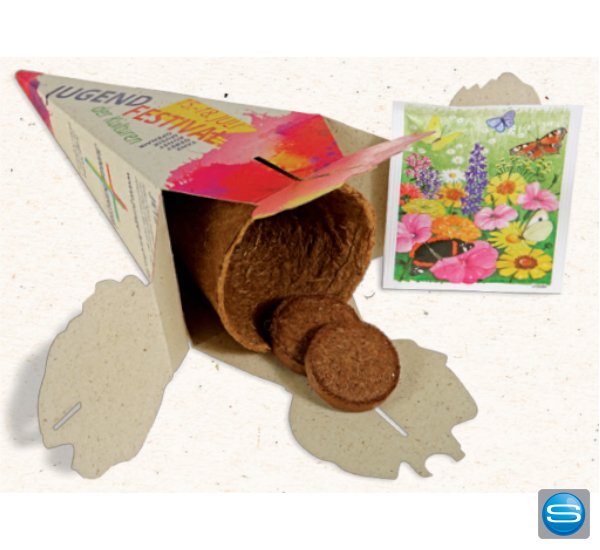 | Maße: | Format Zaubertüte 65 x 65 x 210 mm (geschlossen) Format Cellulosetopf 60 mm Ø, 63 mm Höhe Format Saattüte 62,09 x 80 mm, Standardmotiv Erdquellscheiben 2 Stück, jeweils 30 mm Ø Gesamtgewicht ca. 25 g |
