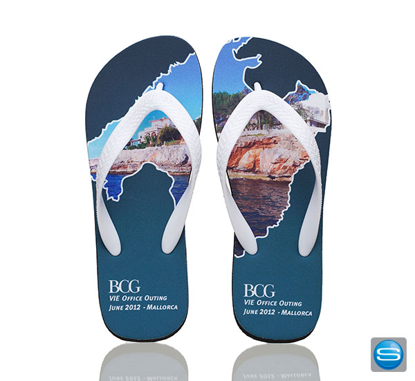 Zehensandalen mit Ihrem Design als Werbeartikel!